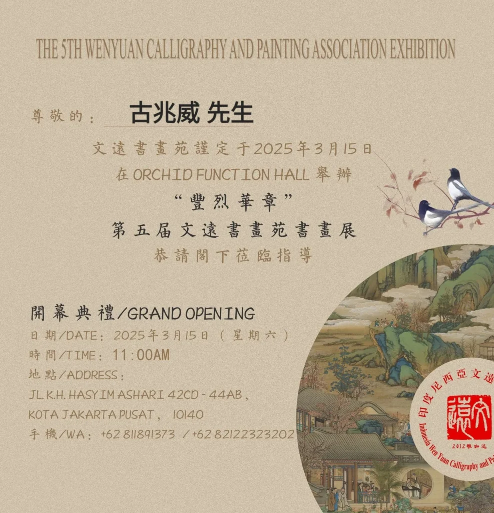 Pameran yang diselenggarakan oleh Indonesia Wen Yuan Calligraphy and Painting Association (印尼文遠書畫苑) ini menampilkan berbagai karya kaligrafi dan lukisan yang indah. Acara pembukaan pameran (Grand Opening) dilaksanakan pada: